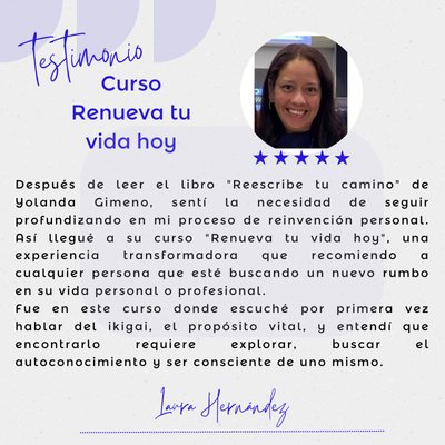 «Renueva Tu Vida Hoy» es un curso diseñado para mujeres mayores de 45 años que se sienten insatisfechas con su vida personal y profesional. A través de 13 vídeos y 7 bonos exclusivos, te ayudará a descubrir tu propósito, conectar con tu ikigai y encontrar un equilibrio integral en todas las áreas de tu vida.
